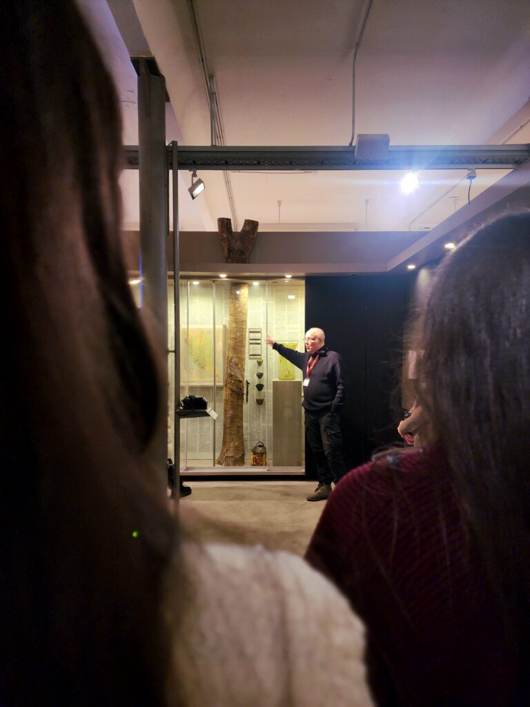 Besonders eindrücklich war der Bereich zur Arbeitswelt in den Fabriken. Arbeitsteilung, lange Arbeitszeiten, fehlender Arbeitsschutz und die Austauschbarkeit von Arbeitskräften wurden nicht nur erklärt, sondern an Maschinen und Beispielen verdeutlicht. Der Guide hat uns dabei nicht nurgezielt Fragen gestellt, sondern auch gezielt zum Perspektivwechsel angeregt. Die Vorstellung der Perspektive eines Arbeiters in der Fabrik hat die Themen sehr anschaulich gemacht. Der Arbeitsalltag war stark von Kontrolle und Zeitdruck geprägt, etwa durch Stechuhren. Anhand der Maschinen und der Vorstellung der andauernd routinemäßigen Arbeit sowie fehlender Sicherheitsvorschriften, konnte man gut erkennen, wie schnell schwere Unfälle passierten.
