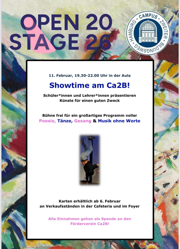 AllgemeinOpen Stage am Campus Zweiter Bildungsweg By ca2b 6. Februar 2026 6. Februar 2026 Save the date: 11. Februar von 19:30 bis 22 Uhr in der Aula. Aktuelle Stellenangebote A14 am Campus
